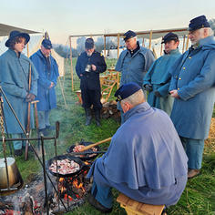 The First Long Island Volunteers keeping warm around the fire on Saturday night
